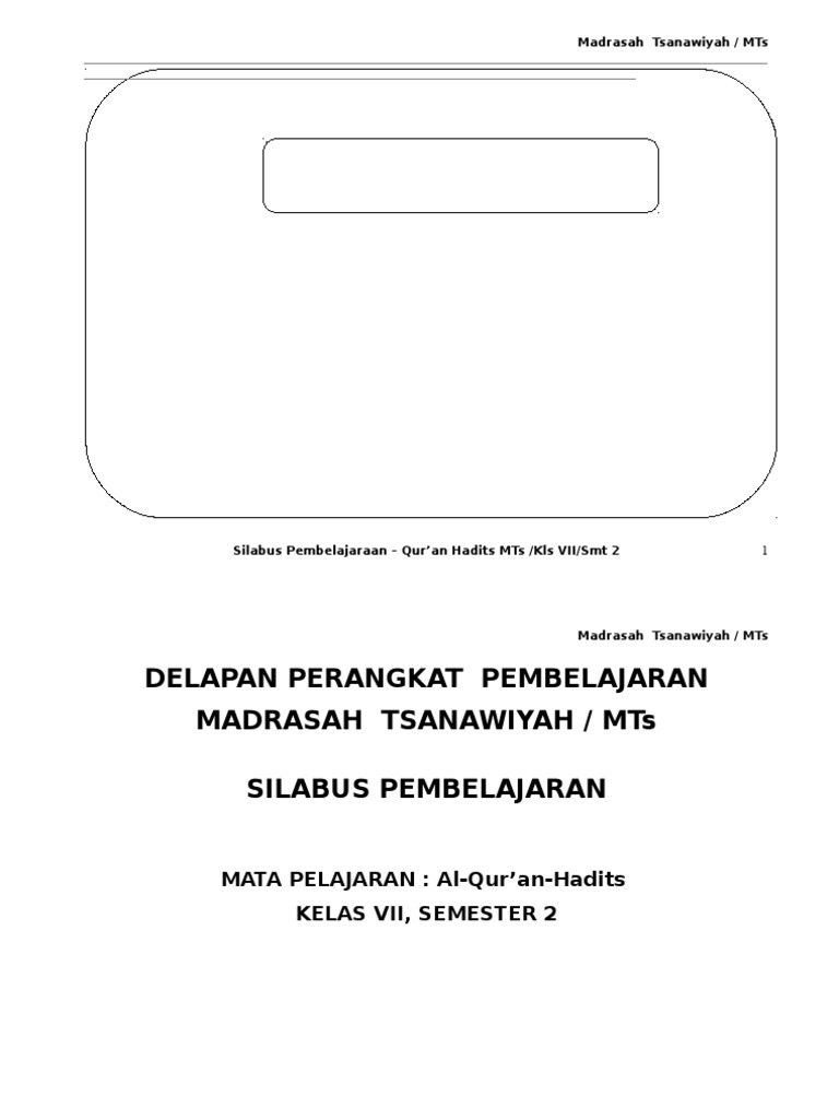 Madrasah tsanawiyah mata pelajaran : Perangkat aqqurqn hadist mtsn ada kahh. Sahabat edukasi yang berbahagia… berikut materi pelajaran bidang studi pendidikan agama islam (pai) untuk jenjang smp/mts kelas vii (tujuh) yang menggunakan kurikulum ktsp 2006 mulai dari semester 1 (ganjil) s.d. Home > materi kelas 7 > materi kelas 7 semester genap hukum bacaan qalqalah. Silabus dikembangkan berdasarkan standar kompetensi lulusan dan standar isi untuk satuan pendidikan dasar dan menengah sesuai dengan pola pembelajaran pada setiap tahun ajaran tertentu. Situs untuk mata pelajaran agama. Silabus nama sekolah mata pelajaran kelas/semester alokasi waktu standar kompetensi pengetahuan. Bekasi, 14 juni 2010 guru mata pelajaran al quran hadist. Smp negeri 1 pontianakkelas : Hal tersebut menunjukkan bahwa fungsi hadist. Posting pada silabus smp, writingditag contoh rencana pembelajaran silabus smp kelas 7 semester 2, silabus bahasa inggris semester 2 kelas 7, silabus smp bahasa inggris. Download silabus full mapel smp kelas 7 semester 1 dan 2 kurikulum 2013. Bersumber pada arahan nadiem makarim, rpp 1 lembar kelas 7,8,9.